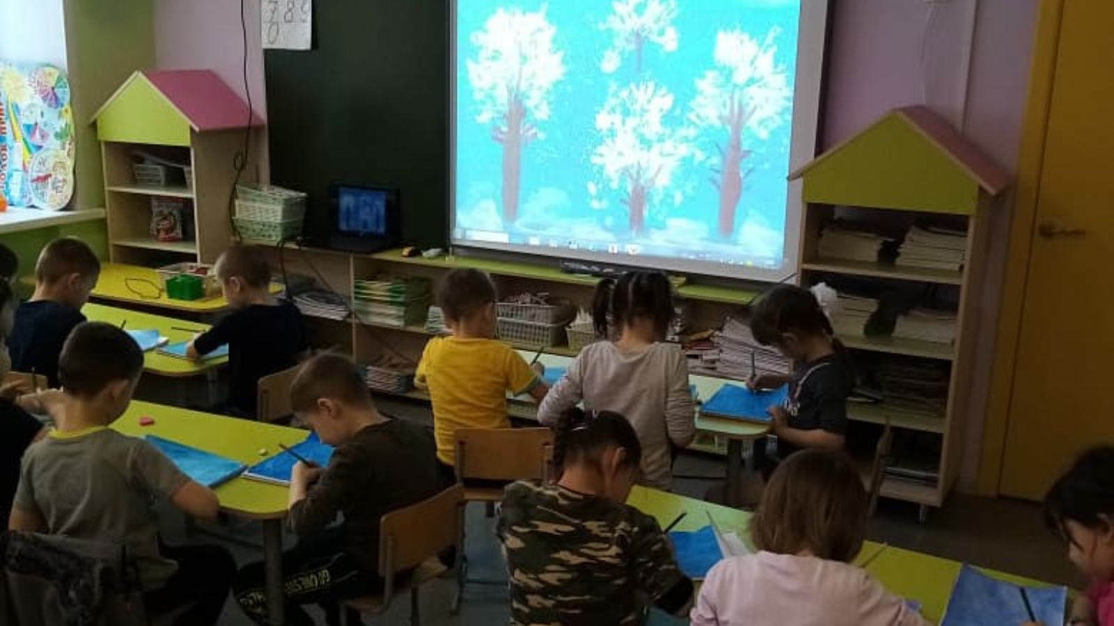 Дети подготовительной группе в занятие по рисованию на тему "Иней покрыл деревья". Программное содержание занятия: учить детей изображать картину природы, передавая строение разнообразных деревьев (большие, маленькие, высокие, низкие, стройные прямые, искривлённые); закреплять приёмы работы с красками, учить рисовать гуашью-белилами иней на ветках; закреплять умение красиво располагать изображение на листе; развивать эстетическое восприятие, вызвать желание любоваться красотой зимнего пейзажа, воспитывать любовь к природе.