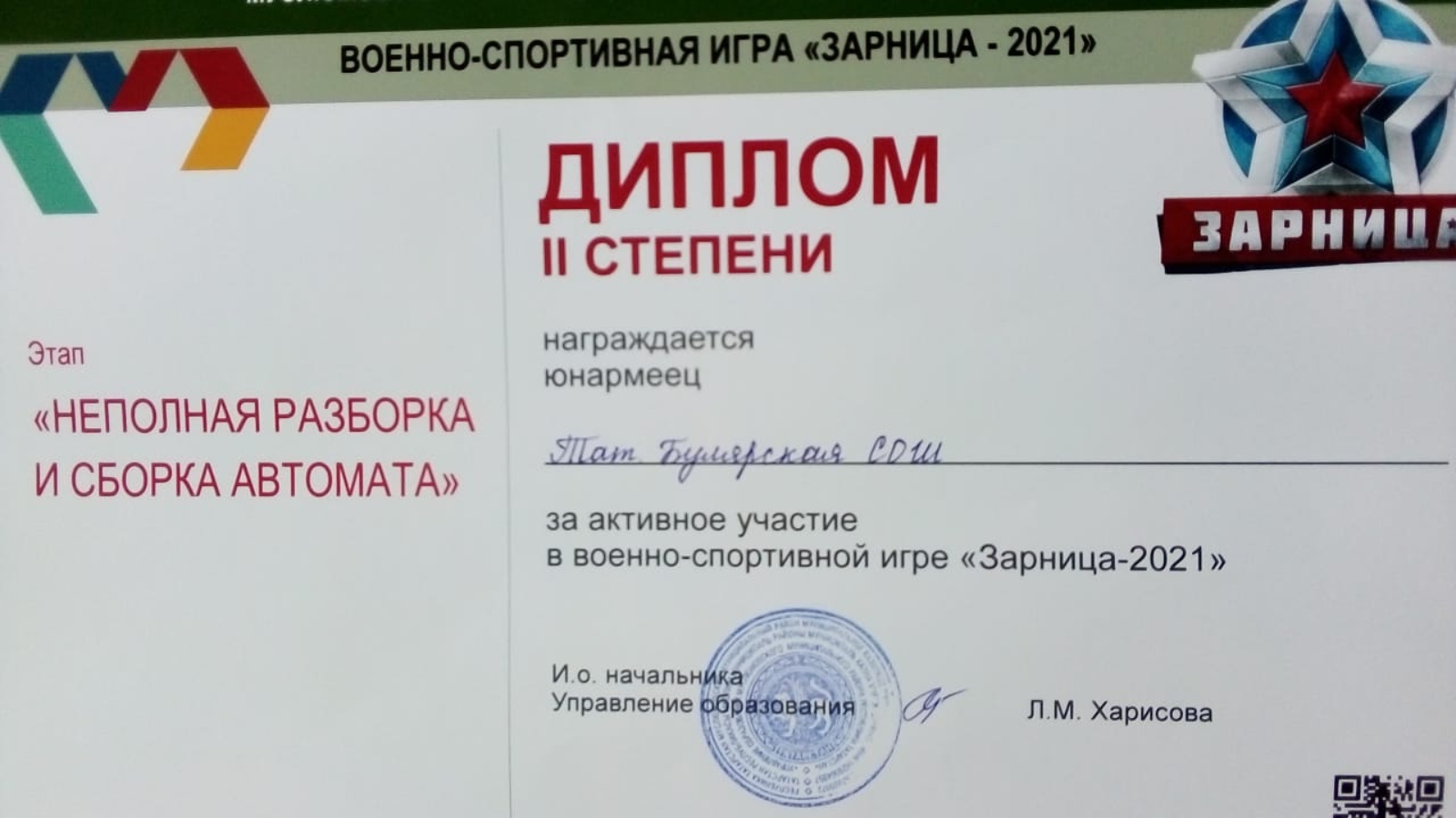 На базе Муслюмовской гимназии прошла военно-спортивная игра "Зарниөа-2021". В результате испытаний и соревнований команда нашей школы была награждена дипломом 2 степени.