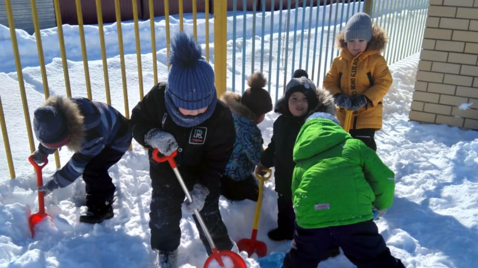 Прогулка в средней группе. На дворе весна, а снега много и мы все еще катаемся с горки.Роем окопы, наблюдаем за солнцем и веселимся.