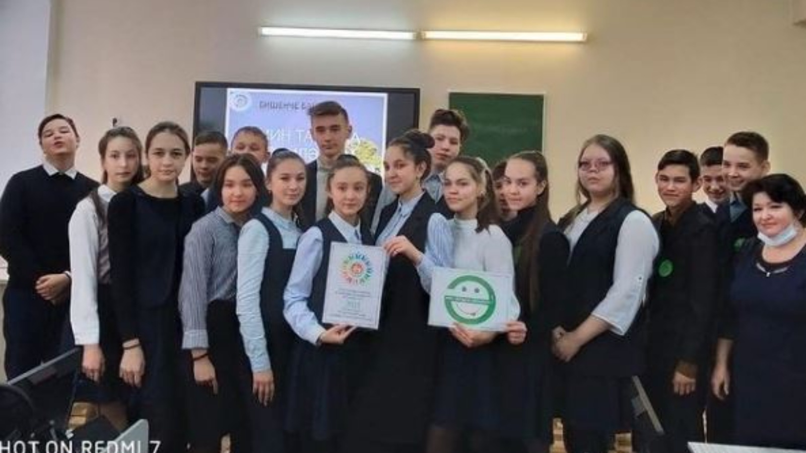 Ученики 8а класса Муслюмовской гимназии приняли участие в акции "Мин татарча сөйләшәм"