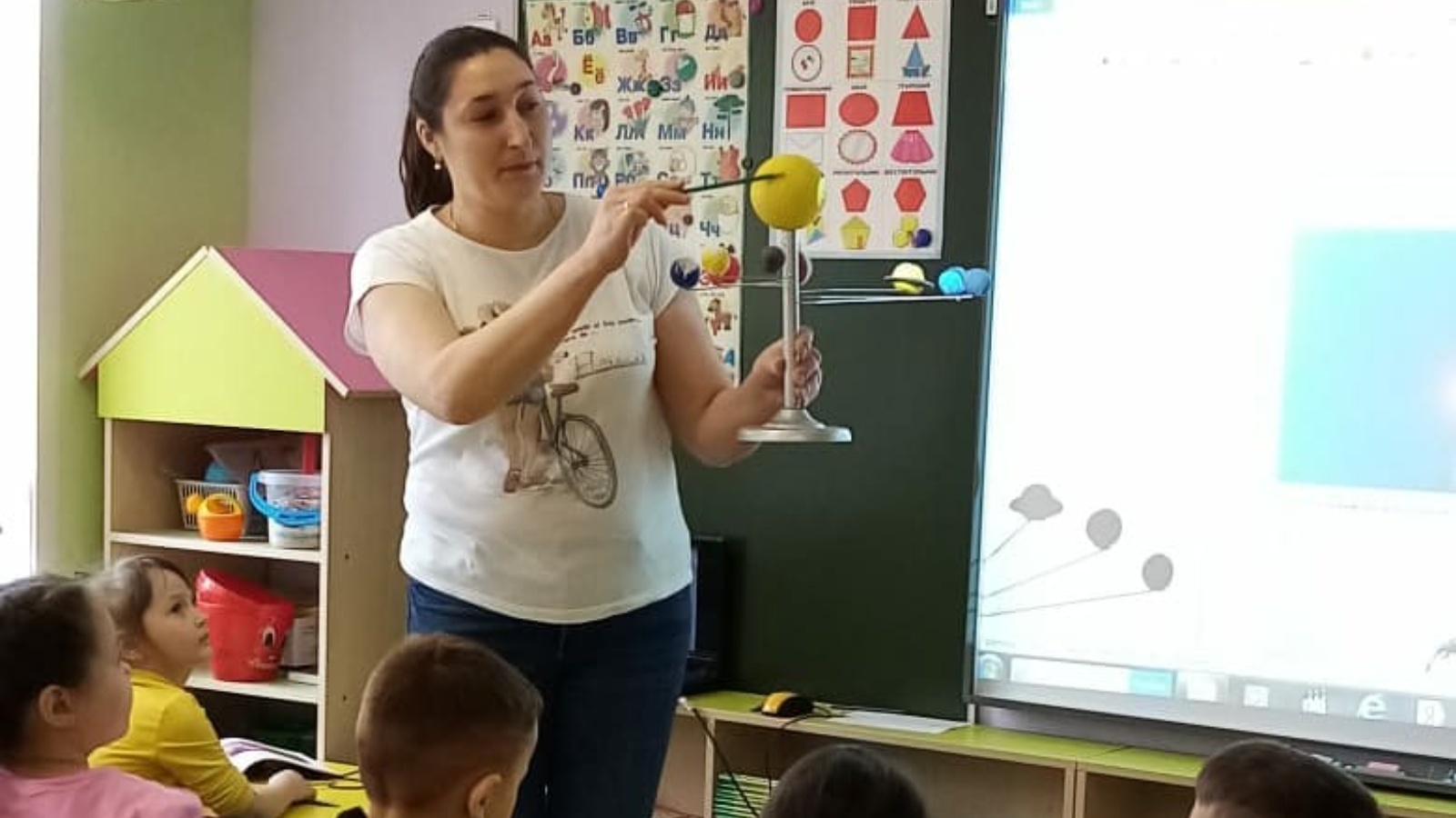 Сегодня дети детского сада "Кояшкай" отправились в увлекательное виртуальное путешествие во времени и пространстве. Открыла мероприятие презентация под названием «Юрий Гагарин — первый в космосе». Дети смотрели на экран и слушали рассказ о первом космонавте Герое Советского Союза Ю.Гагарине, о его трудном детстве, юности, учебе, о первом полете. Затем воспитатель рассказала об истории создания первых космических станций, о том, как проходит подготовка к полётам, чем питаются космонавты в невесомости и какие качества нужны для того, чтобы отправиться к звёздам. Дети так же посмотрели несколько видеороликов о планетах Солнечной системы, о первых животных, побывавших в космосе – знаменитых собаках Белке и Стрелке, благополучно вернувшихся на землю, о первопроходце космоса, которым стал Ю.А. Гагарин. Дети узнали о Валентине Терешковой, первой женщине, полетевшей в космос.