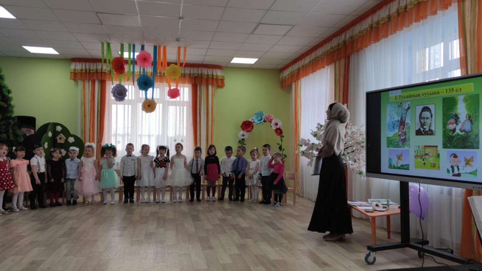 В рамках Года родных языков и народного единства в средней группе МБДОУ "Кубэлэк" прошел вечер, посвященный творчеству Г. Тукая. Дети пели песни, рассказывали стихи и сказки. В гости пришел "Былтыр ". Он проверил ловкость ребят.