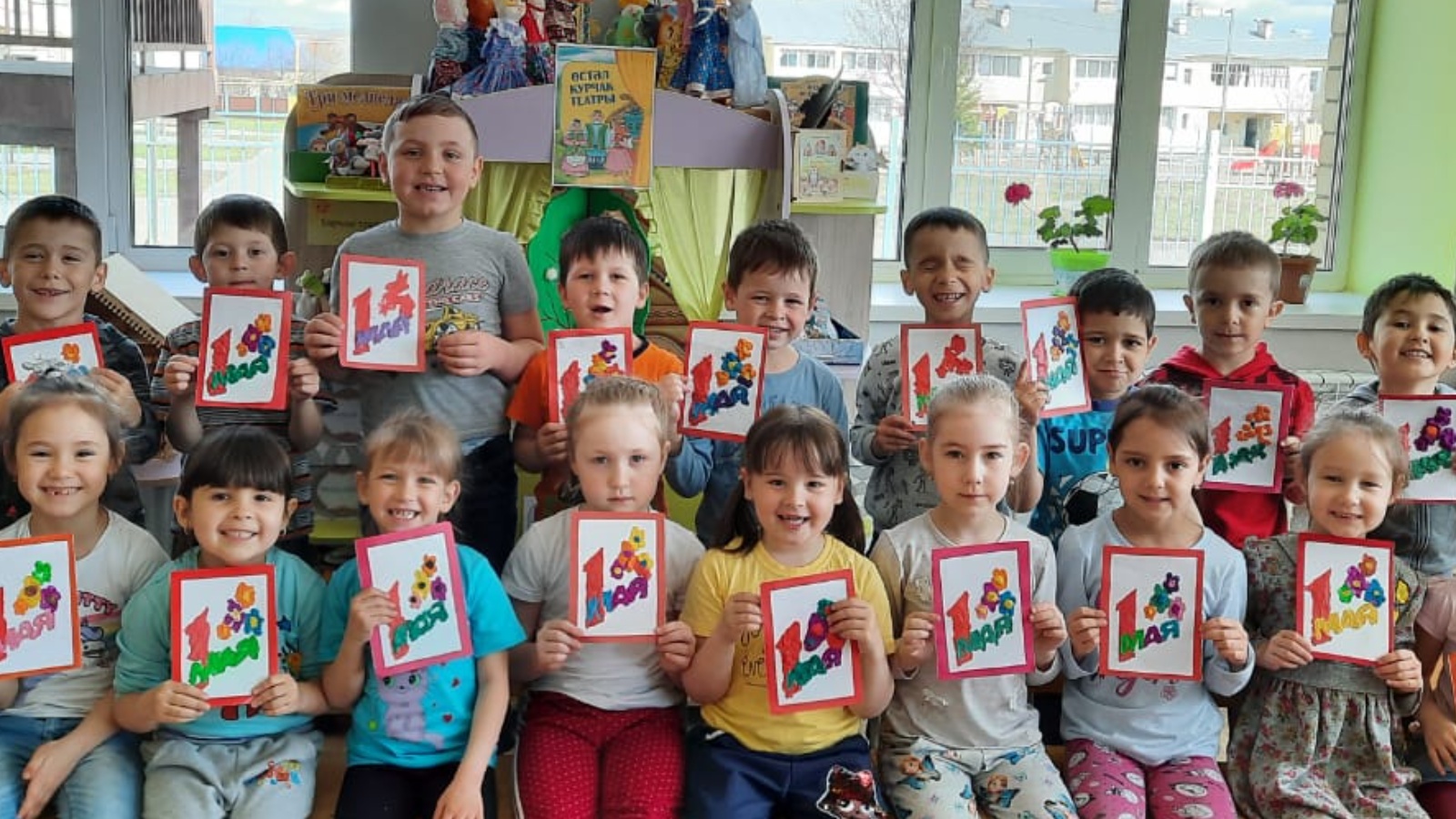 В рамках Года родных языков и народного единства дети старшей группы МБДОУ "Кубэлэк"сделали открытки, посвященные празднику 1 Мая