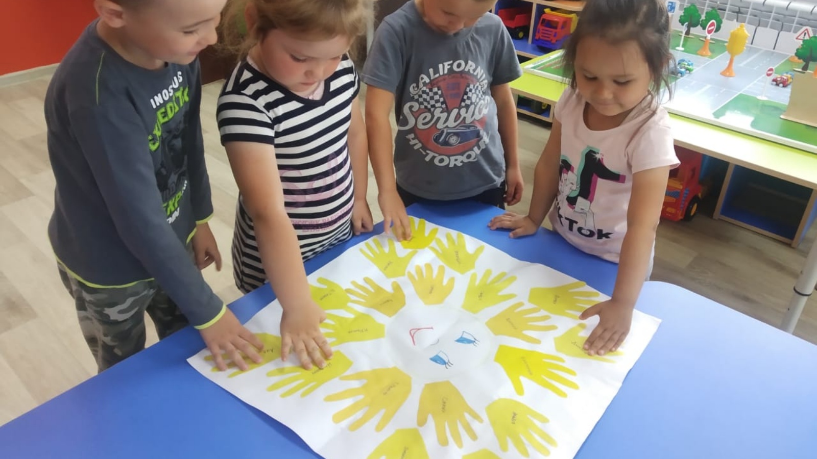 В МБДОУ "Кубэлэк" сегодня дети средней группы сделали коллективную аппликацию по случаю "Дня Солнца".