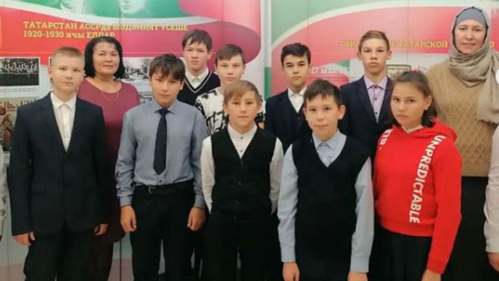 В рамках Года родных языков и народного единства ученики 7в класса Муслюмовской гимназии посетили выставку, посвященную столетию Республики Татарстан.