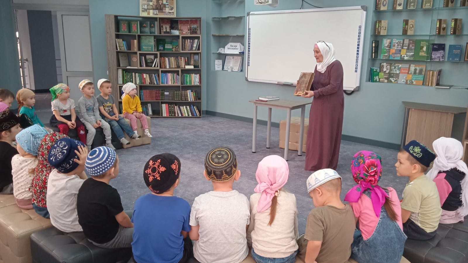 В рамках года родных языков и народного единства дети средней группы посетили одну из красивейших мечетей нашего района- мечеть Джамигь. Дети прослушали молитвы и присоединились к беседе.
