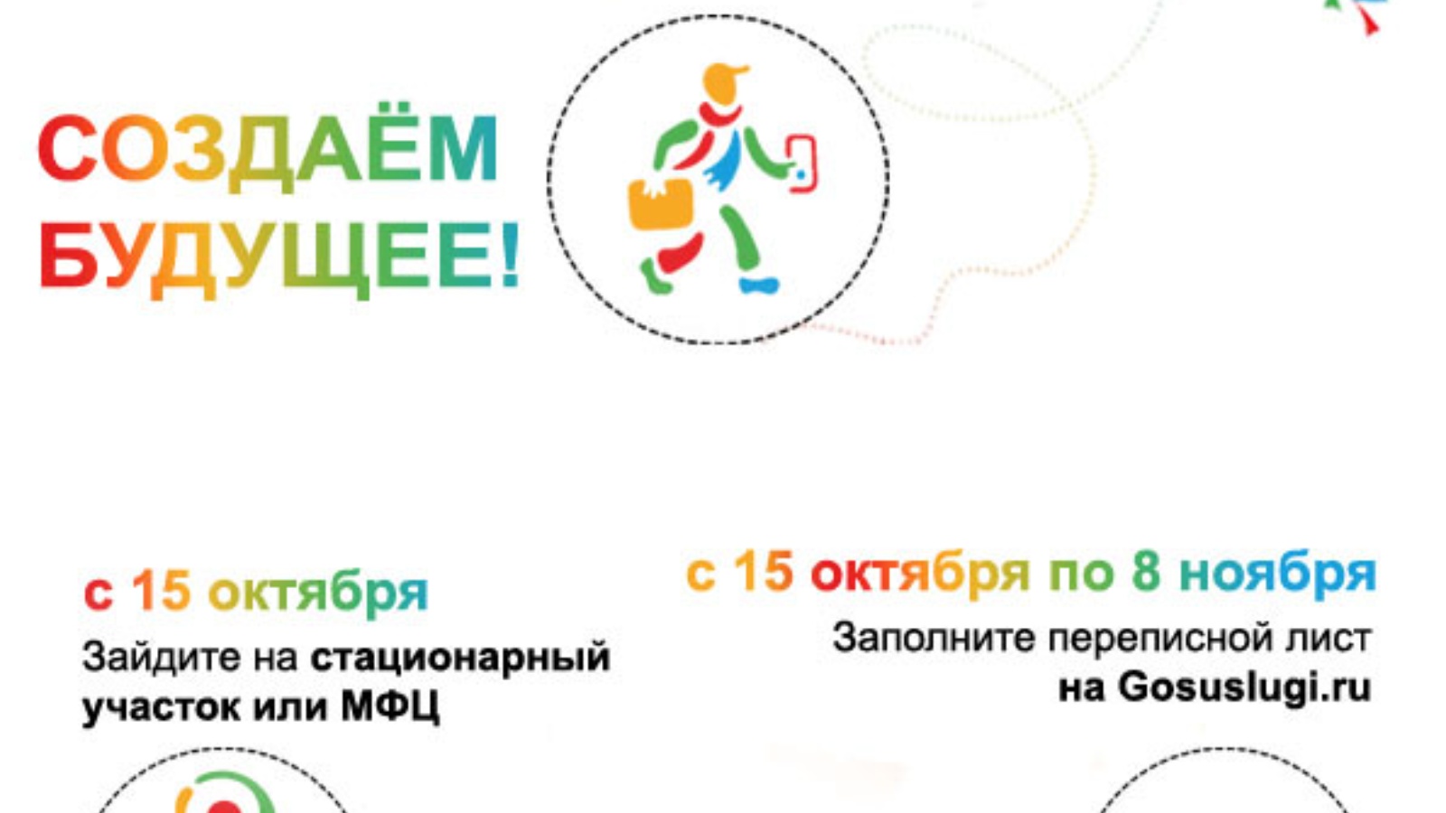 - с 15 октября по 8 ноября будет предоставлена возможность всем гражданам, имеющим стандартную и подтвержденную учетную запись на портале Госуслуги России пройти интернет-перепись;