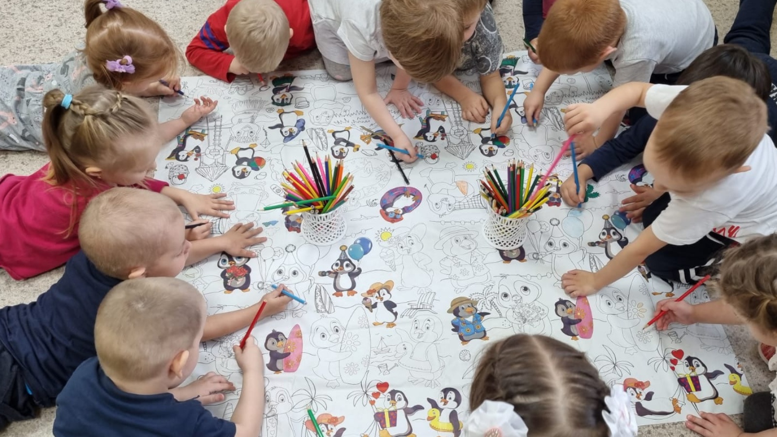 Дети второй младшей группы совмещают работу над закреплением цвета с развитием навыков владения пером. Малыши обучаются мерам предосторожности, секретам дружеской игры при выполнении коллективной работы.