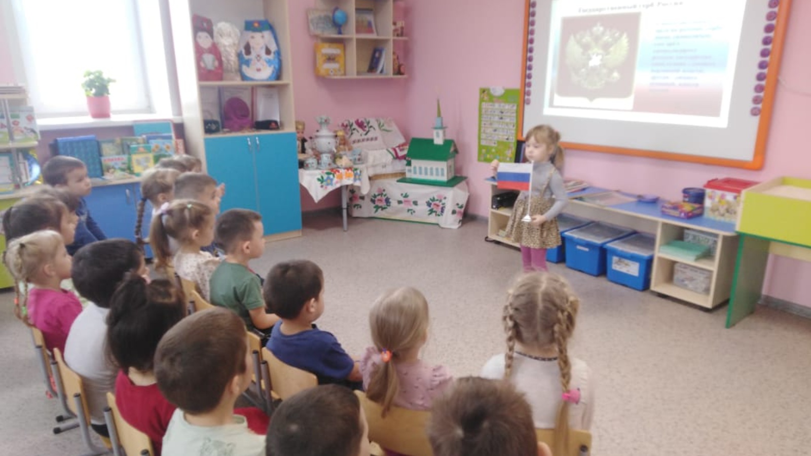 В рамках года родных языков и народного единства, в средней группе занятие по развитию речи "Моя родина-Россия". У детей сформировались представления о родине, её истории.