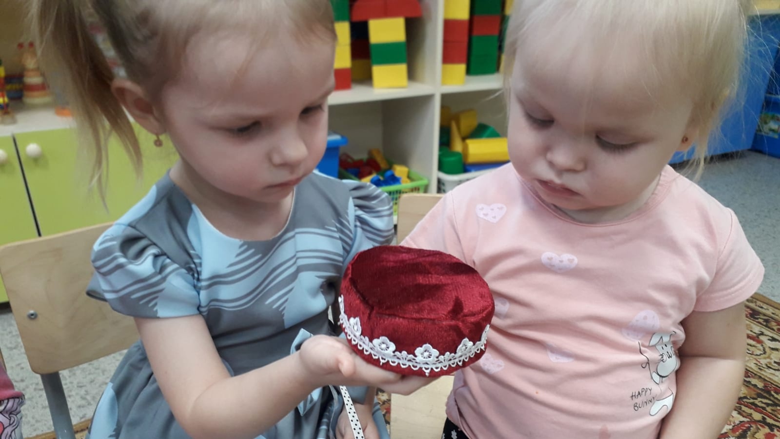 В рамках Года родных языков и народного единства в первой младшей группе была проведена беседа на тему "Тубэтэем, калфагым". Дети познакомились с орнаментами национальных головных уборов татарского народа.