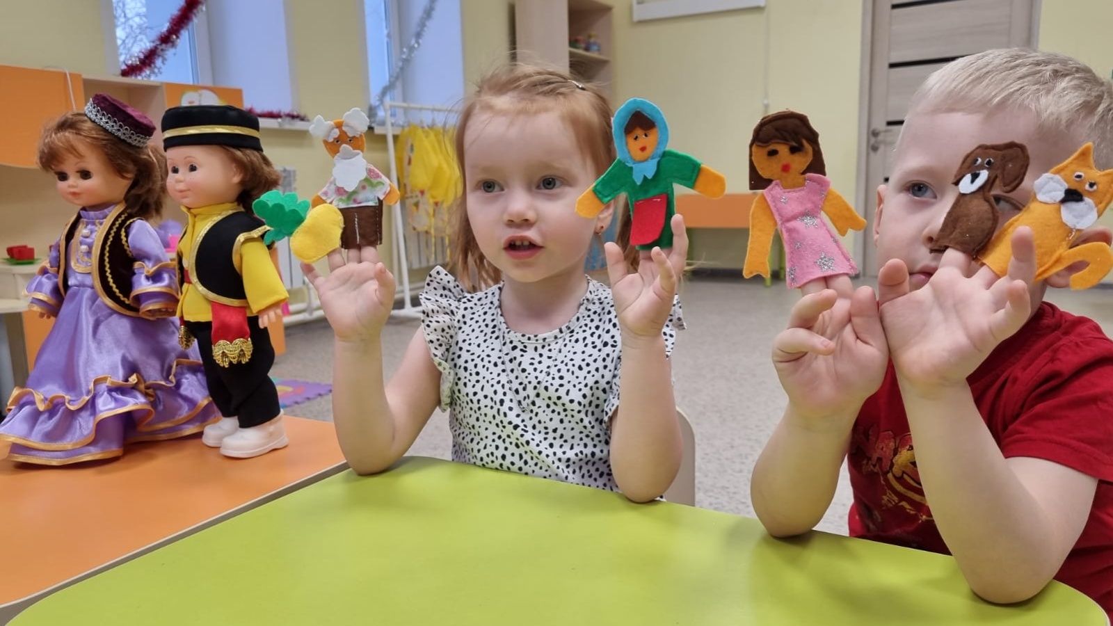 В рамках года родных языков и народного единства, дети второй младшей группы знакомятся с мастерством пальчикового театра. Дети театрализуют знакомые сказки с помощью пальчиковых кукол. Этот способ требует не только знания содержания сказки, но и сильной внимательности и терпения. Ребята очень стараются и успешно выступают.