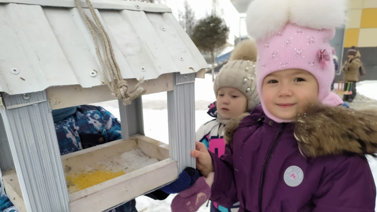 Дети подготовительной группы совместно с родителями участвовали в конкурсе "Кормушка, помоги птицам!".