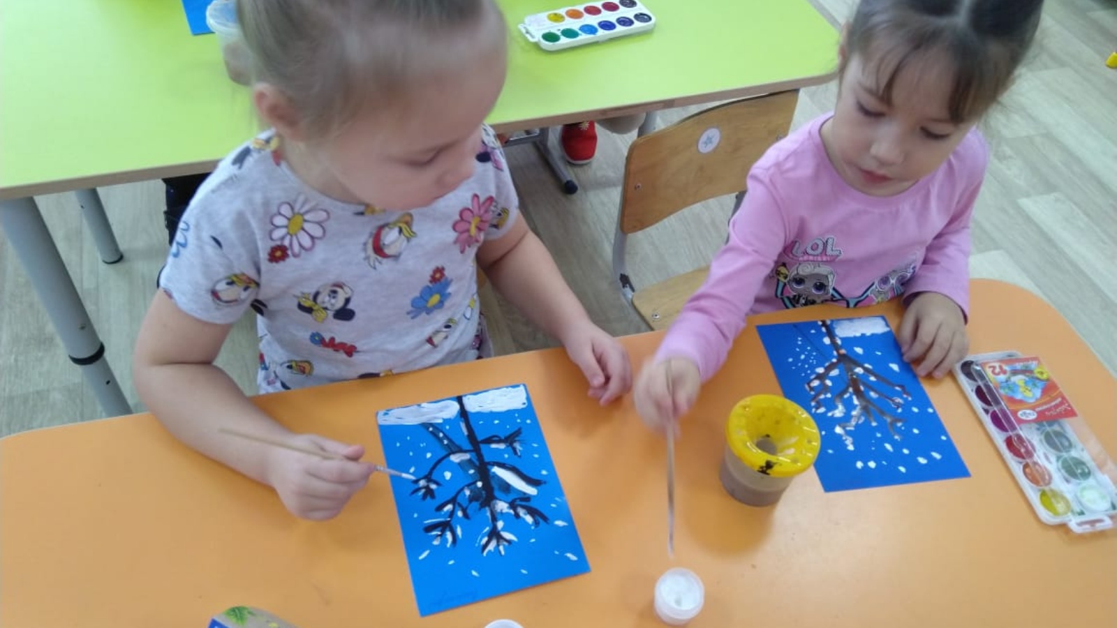 Рисование в старшей группе на тему "Развесистое дерево зимой".