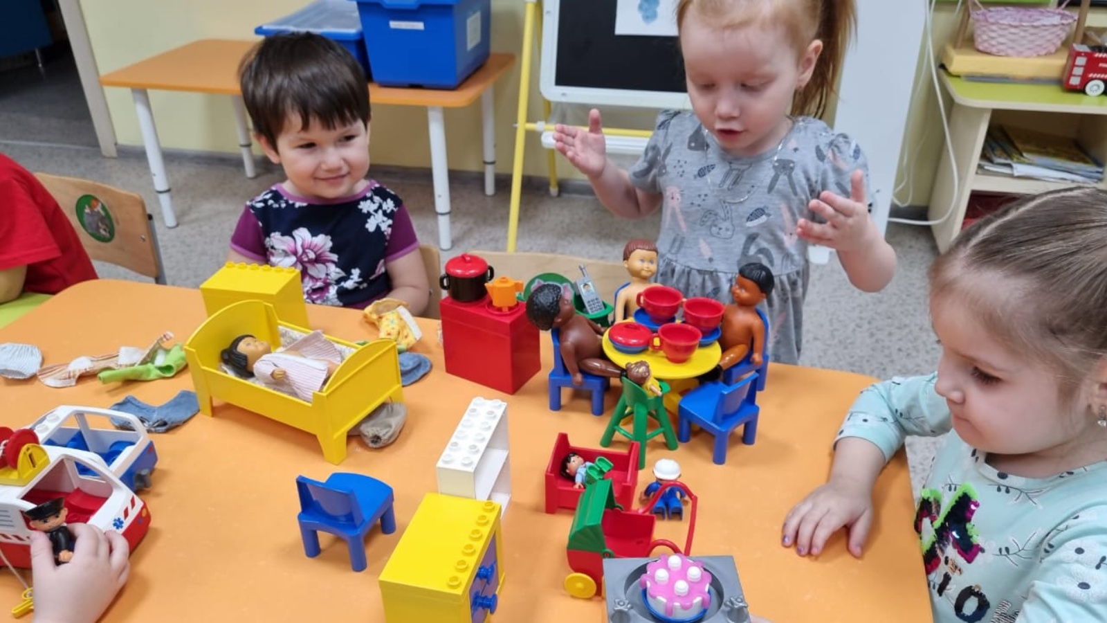 Дети второй младшей группы работают в рамках проекта "Лего-конструкторы", направленного на изучение профессий. В ходе сюжетно-ролевой игры дети изучают специфику профессии и продолжают самостоятельную работу с помощью игровых лего-конструкций.