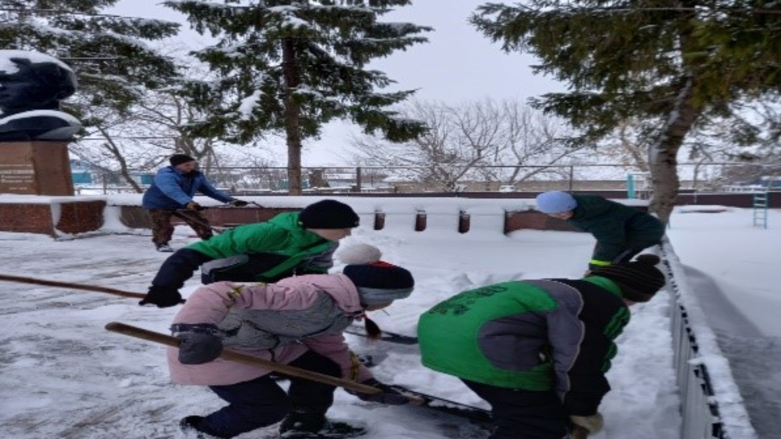 Учащиеся МБОУ "Тат.Булярская СОШ" очистили от снега обелиск находящийся в селе Исансупово.