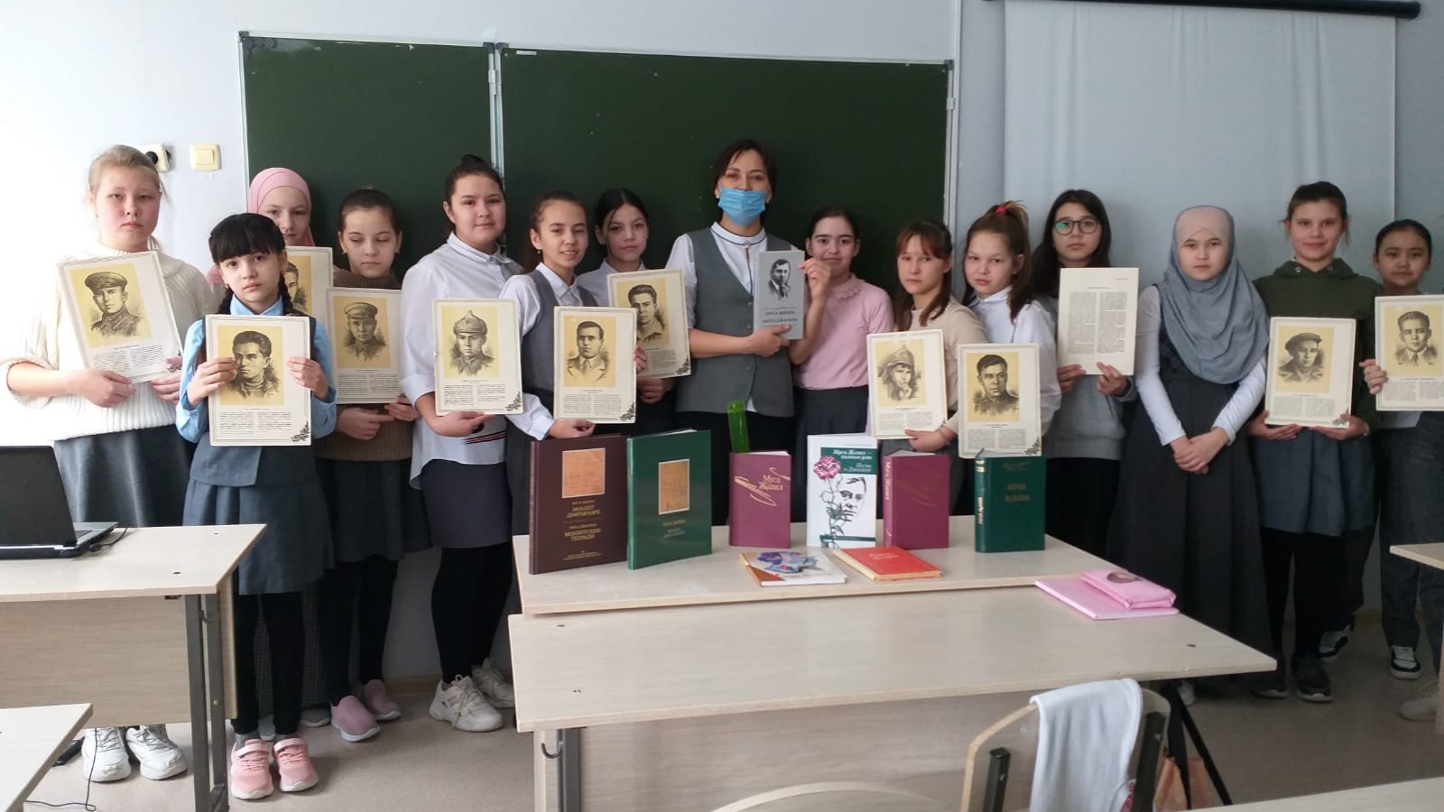 В рамках проекта «У войны не женское лицо…» и ко дню рождения великого поэта, героя советского союза, лауреата Ленинской премии  для учащихся 6 классов МБОУ школы им. Г. Тукая  был проведен час мужества и отваги под названием: «Моабитские тетради». Данные тетради были написаны в тылу врага. Герой Советского союза Муса Джалиль, увековечивший своё имя стихами и песнями, написанными в фашистских лагерях, и смертью-подвигом. В рамках этого  мероприятия библиотекарь рассказала учащимся о непростой биографии поэта, о его жизни, учёбе, творчестве. Ребята узнали в плоть до тончайших деталей о жизни, о детстве легендарного поэта. В конце мероприятия были прочитаны стихи поэта написанные в фашистских лагерях.