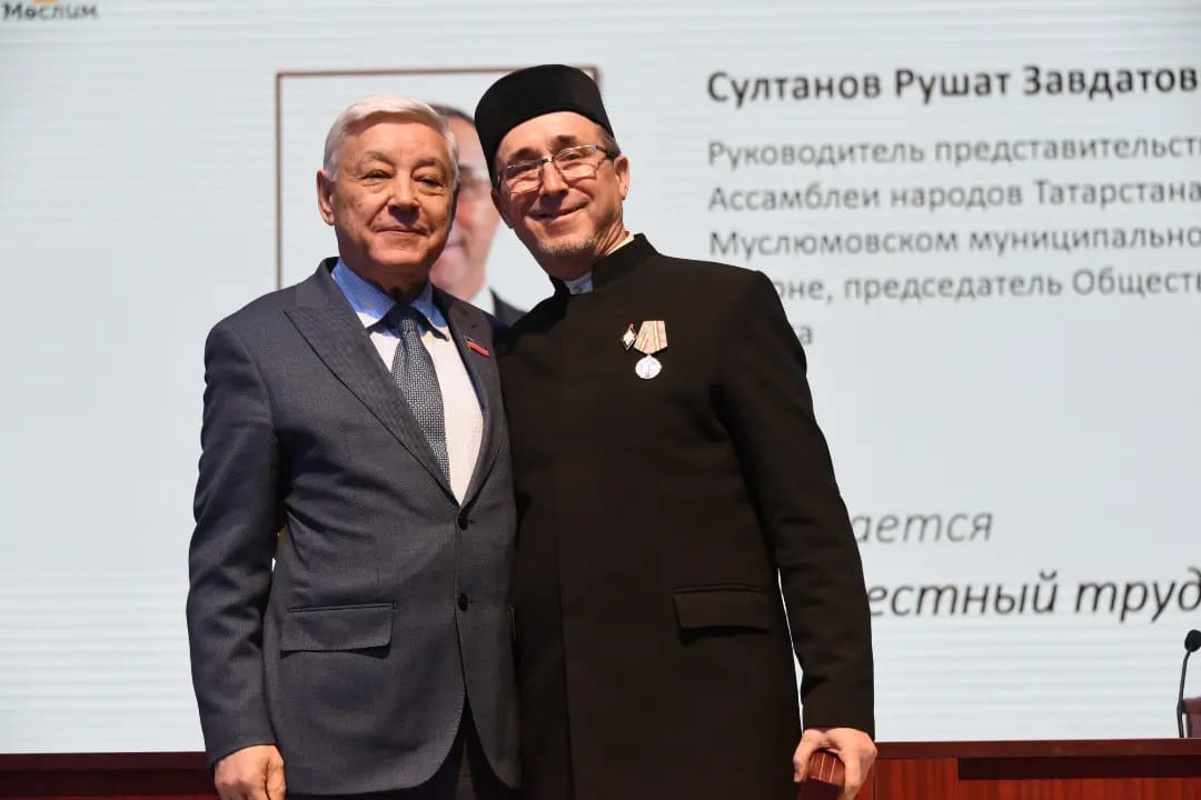 2. медалью “За доблестный труд” за весомый вклад в укрепление социально-экономического потенциала РТ, достижения в профессиональной и общественной деятельности награжден Султанов Ринат Джаудатович-руководитель представительства Ассамблеи народов Татарстана в Муслюмовском районе, председатель Общественного совета.;