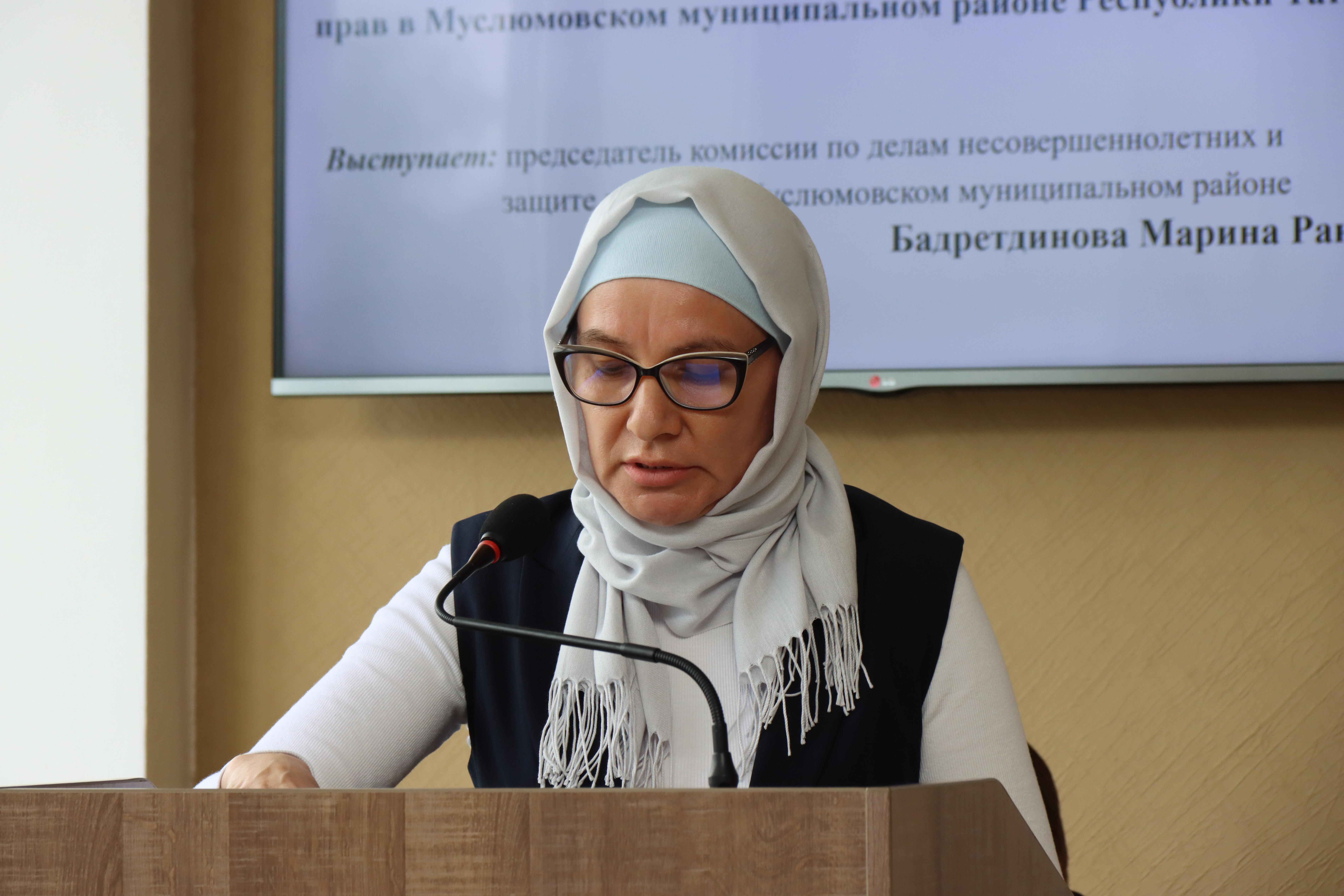 Выступает: Бадретдинова М.Р. – председатель комиссии по делам несовершеннолетних и защите их прав в Муслюмовском муниципальном районе.