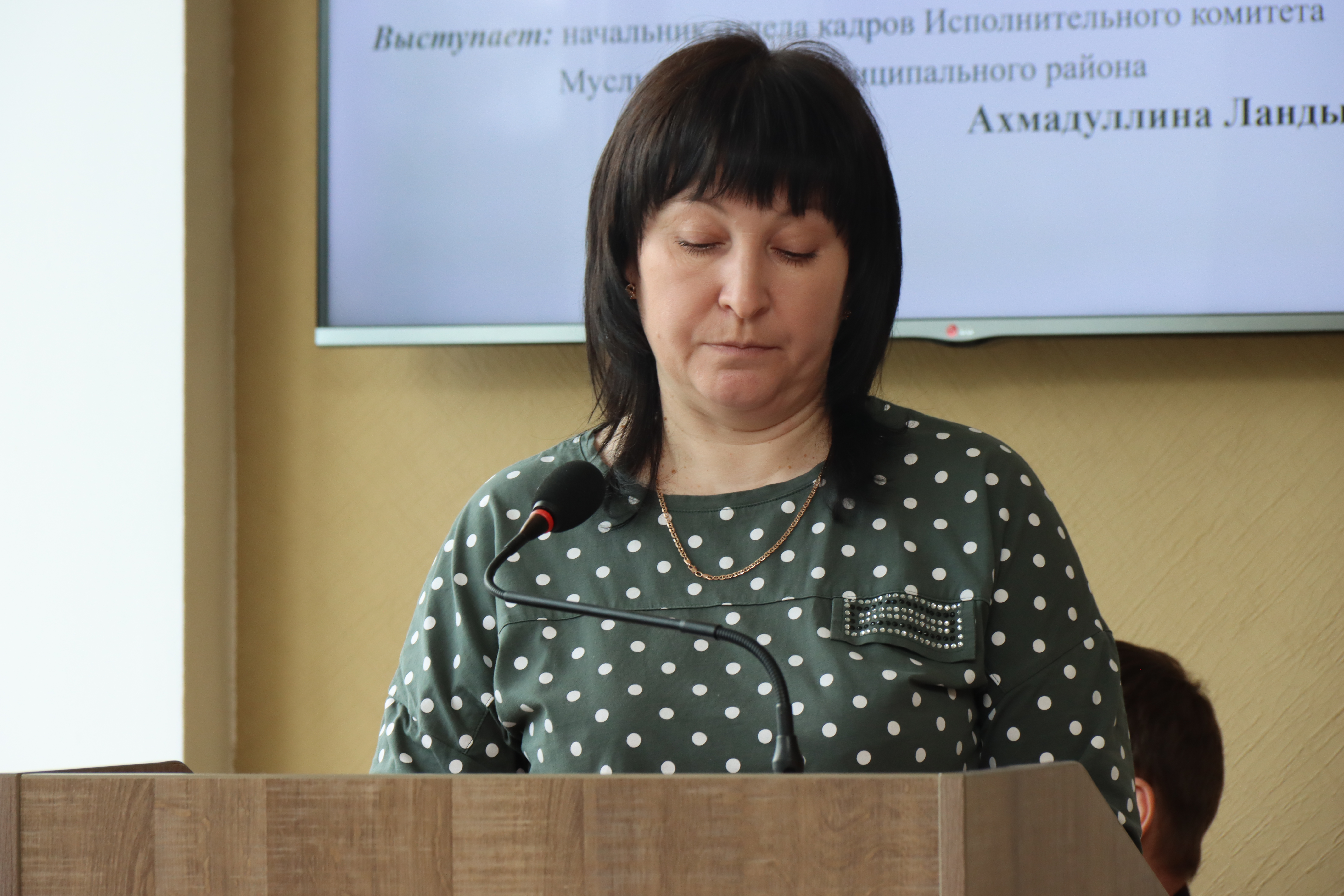 Выступает: Ахмадуллина Л.В. – начальник отдела кадров Исполнительного комитета Муслюмовского муниципального района.