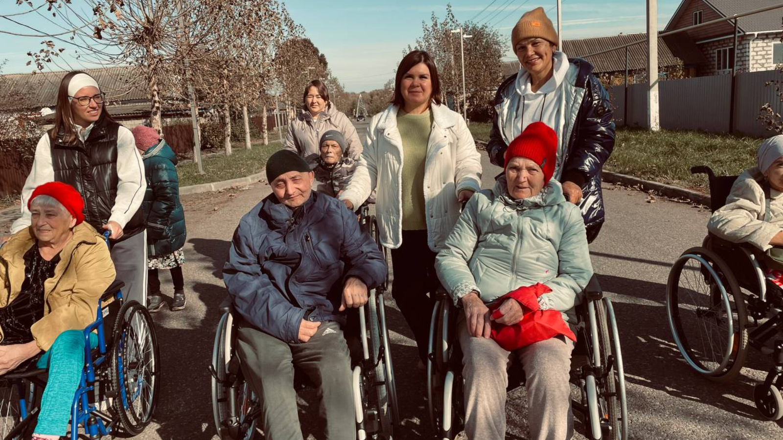 Целью визита было вывести на прогулку маломобильных бабушек и дедушек дома-интерната по нашей прекрасной набережной "Солнечный Ик". Бабушки и дедушки были очень рады выйти на свежий воздух и пообщаться с нами.