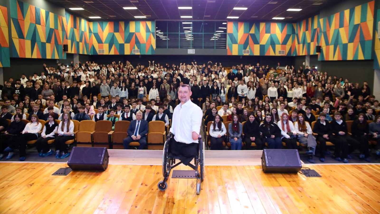 «В ваших венах течёт кровь победителей»: делегация из Муслюмово встретила легендарного Алексея Талая. Сегодня в актовом зале «Центра образования №16» было непривычно тихо, а затем - оглушительно громко от аплодисментов. Город встретил человека-легенду, члена Национальной Паралимпийской сборной Беларуси и успешного предпринимателя Алексея Талая. На встрече присутствовали студенты, ветераны и семьи участников Специальной военной операции - все те, кому сегодня особенно важна поддержка из близлежащих районов Татарстана. История Алексея - это история о том, как после тяжелейшей травмы не просто выжить, а стать чемпионом, отцом четверых детей и мотиватором для миллионов. Спикер без прикрас рассказал о своем пути и о той внутренней искре, которая помогла ему достичь невероятных высот.