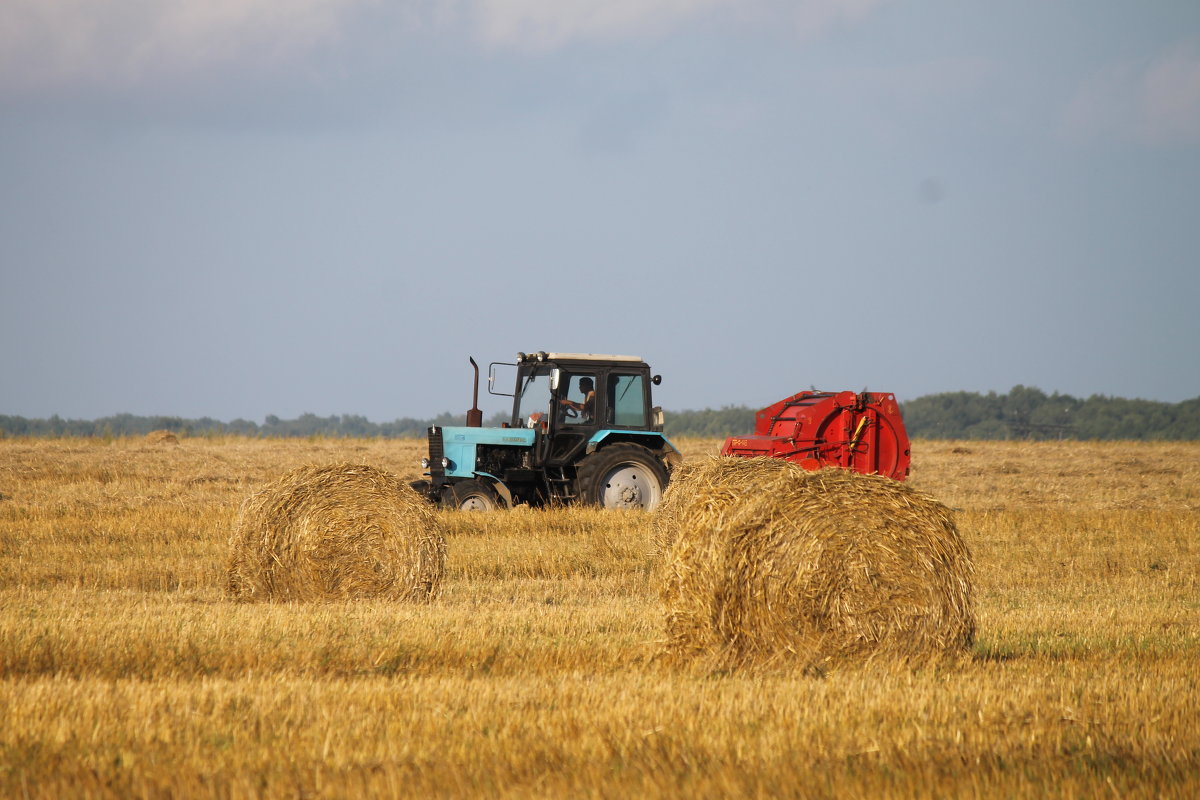 В ИП Глава КФХ Нуретдинов Р.Г. полным ходом идет уборка урожая. На полях работают 3 комбайна и одна жатка. На сегодня убран горох с полей. Продолжается уборка озимой пшеницы и овса. Рабочим КФХ и населению раздают рулоны соломы. Стоимость одного рулона - пятьсот рублей.