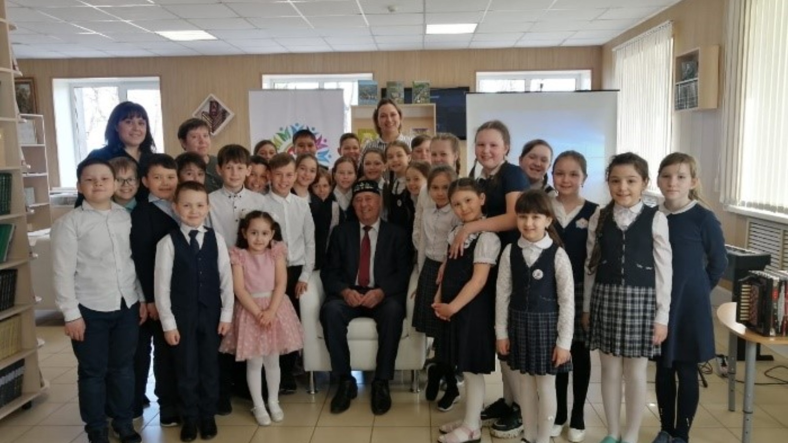 Туган телләр һәм халыклар бердәмлеге елы кысаларында Мөслим үзәк китапханәсендә балалар шагыйре, ТР Атказанган укытучысы, балалар шагыйре, А.Алиш, С. Сөләйманова исемендәге премияләр иясе Мөҗәһит Әхмәтҗанов белән очрашу узды. Әлеге чарада Мөслим гимназиясенең 4б сыйныфы һәм сәнгать мәктәбе укучылары катнашты. Мөҗәһит Әхмәтҗанов балаларга үзенең иҗат җимешләре, шөгыльләре турында сөйләде, төрле уен коралларында уйнап күрсәтте. Балалар үз чиратында әдипнең шигырьләрен сөйләде. Чара сәнгать мәктәбе фортепиано һәм тынлы уен кораллары бүлеге укучыларының чыгышлары белән үрелеп барды.
