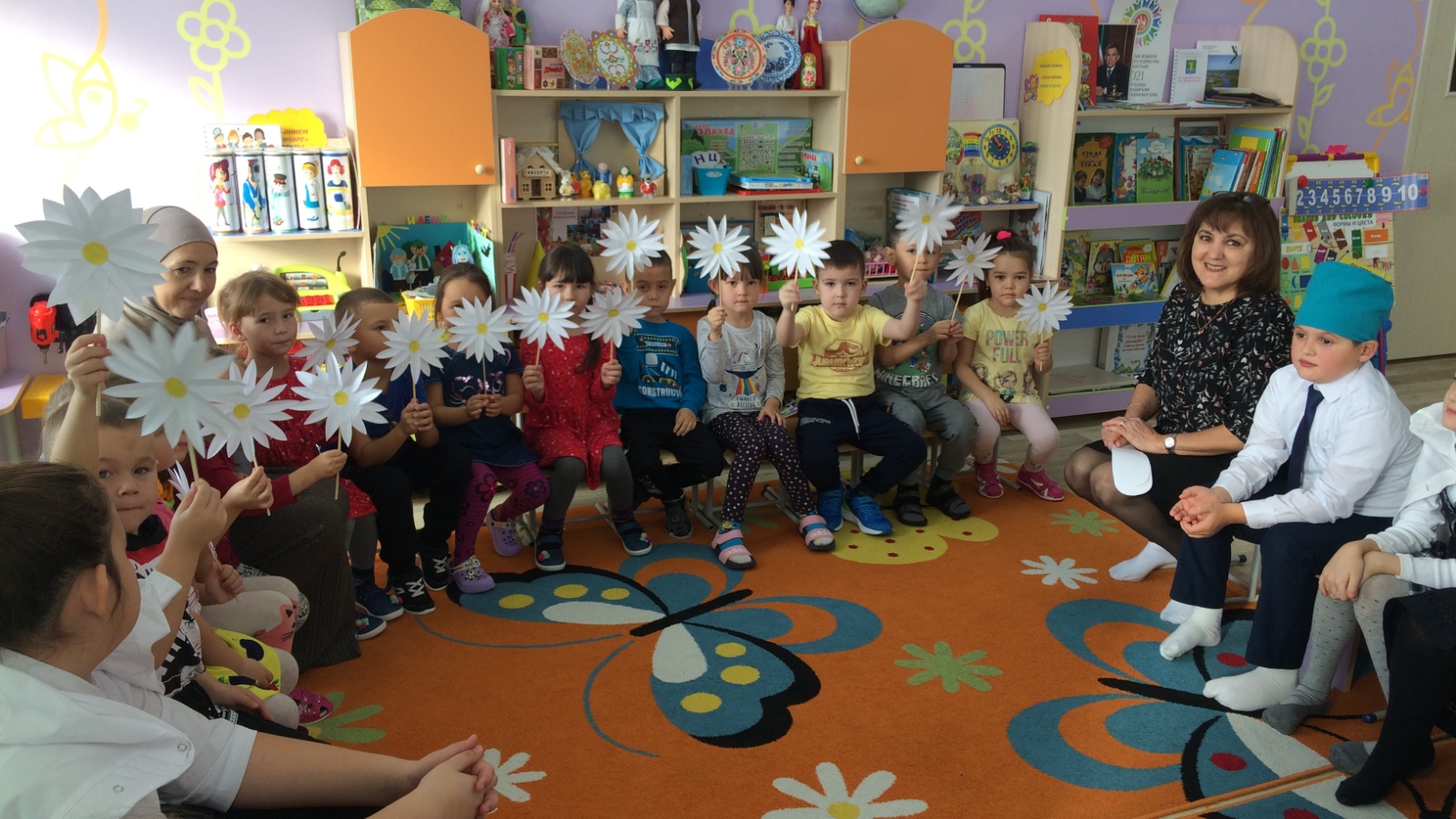 "Ак чәчәкләр" акциясенә кушылып Мөслим гимназиясенең 3 нче "б" сыйныфы укучылары "Күбәләк" балалар бакчасындагы балаларга үз куллары белән ясалган ак ромашкалар бүләк иттеләр.Ак чәчәкләр - акция символы, ул безнең барыбызны да игелекле эштә берләштерергә тиеш.
