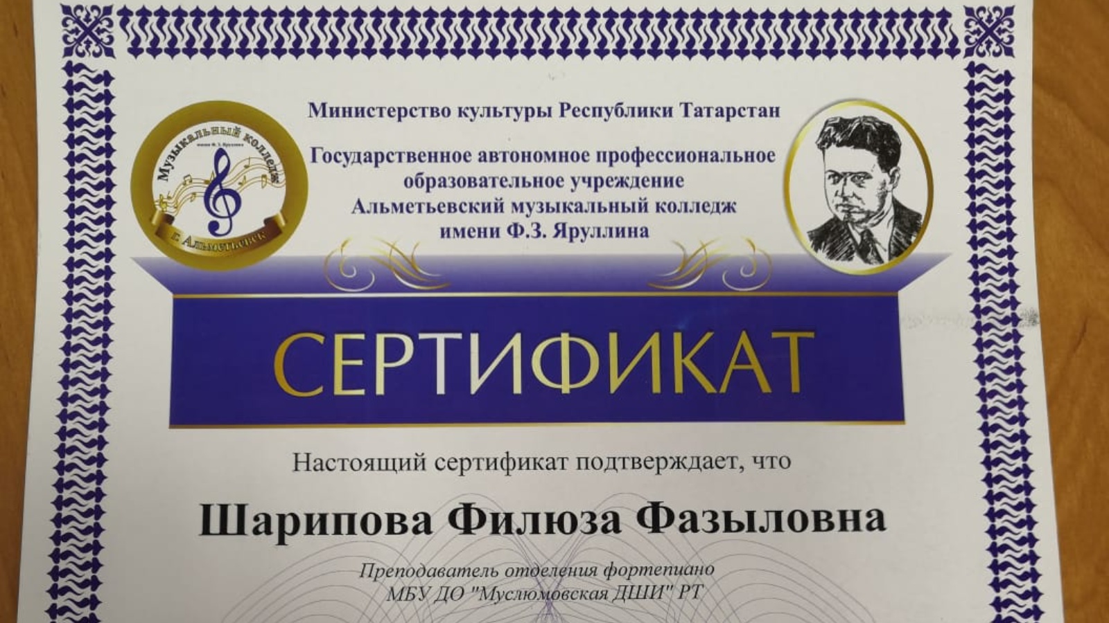 Алдан хәбәр иткәнебезчә, Мөслим сәнгать мәктәбе укытучылары Әлмәт шәһәрендә узган мастер-класста катнашып кайтты. 20 сентябрь көнне Әлмәт музыка көллиятендә фортепиано бүлеге укытучылары өчен педагогик укулар узган иде. Россия һәм Башкортстанның атказанган артисты Лев Франк уздырган мастер-класста катнашкан өчен фортепиано бүлеге укытучылары Гөлназ Хафизова, Алеся Латыпова, Филюзә Шәрипова һәм Алеся Латыпова сертификатка лаек булдылар.