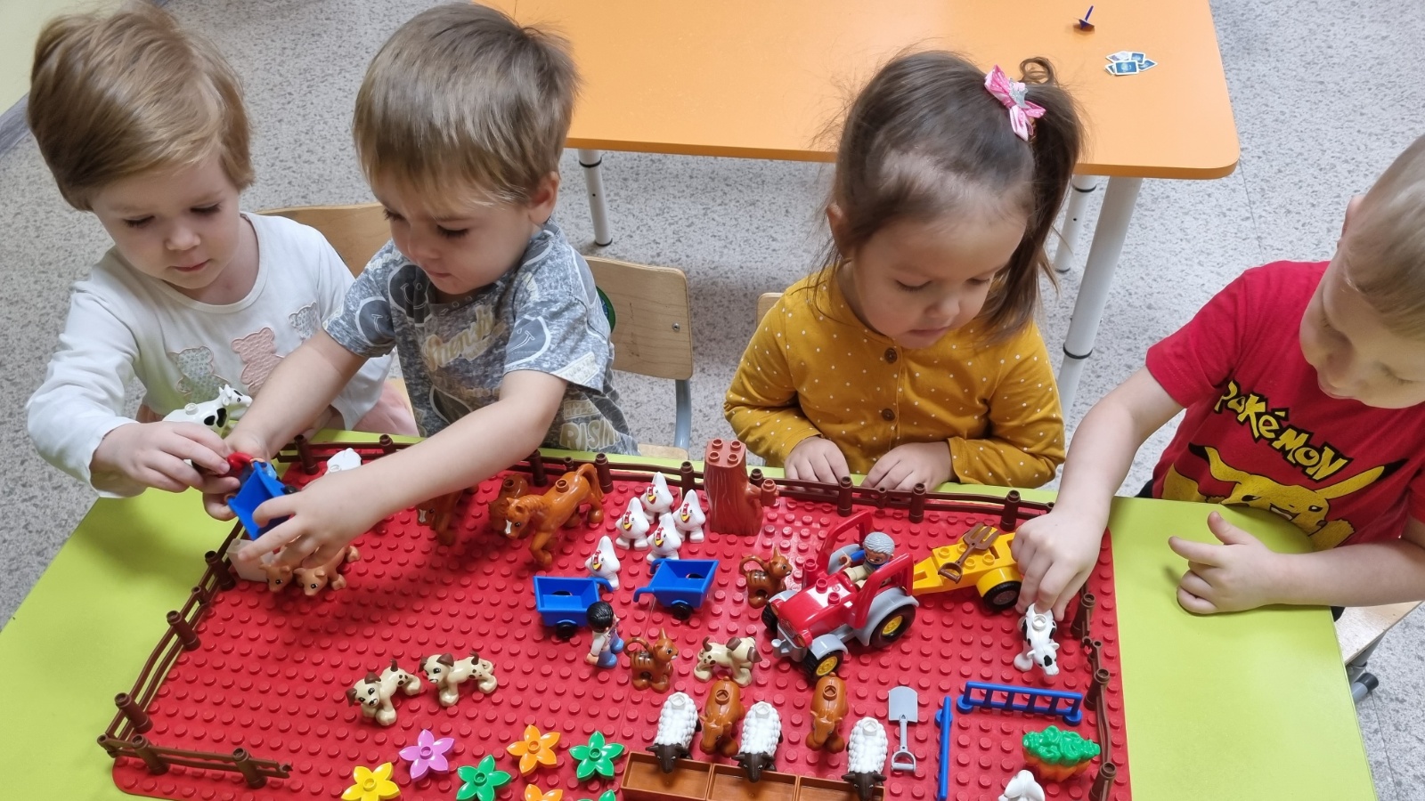 Икенче кечкенәләр төркеме балалары Lego- төзү конструкцияләре белән шөгыльләнүнең катлаулырак баскычына менде. Хәзер алар конструкцияләр белән сюжетлы корылмалар төзи, аларны аңлата белә.