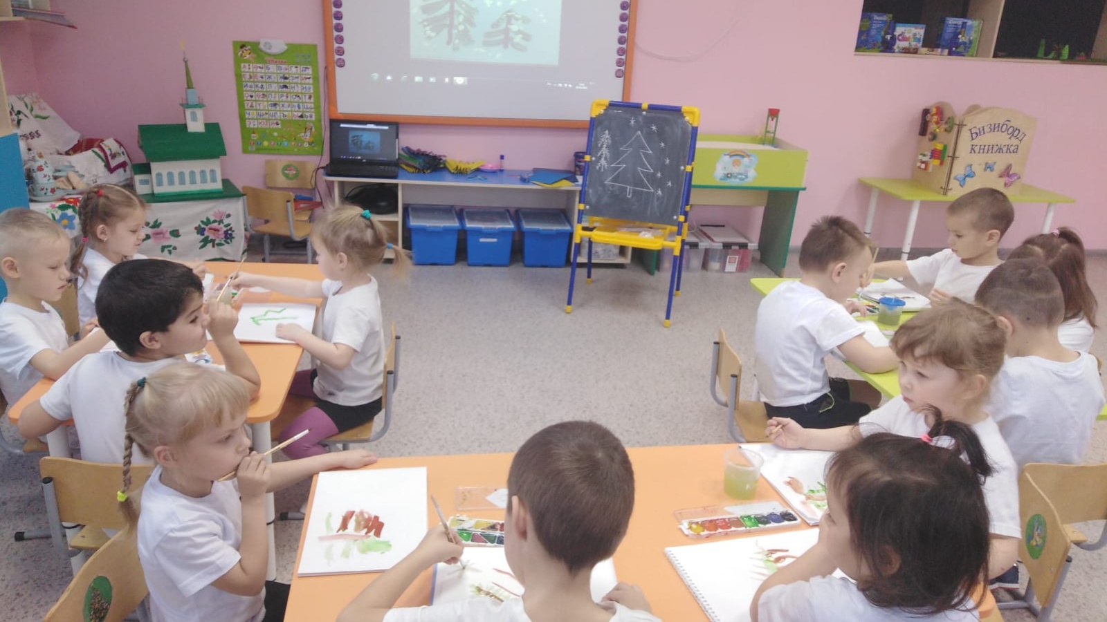 Туган телләр һәм халыклар бердәмлеге елы уңаеннан уртанчылар төркеме балалары рәсем шөгылендә "Безнең чыршы" дигән темага рәсем ясадылар. Балаларда рәсем ясау кунекмәләре формалашты.Төрле буяулар белән кулланырга өйрәнделәр.