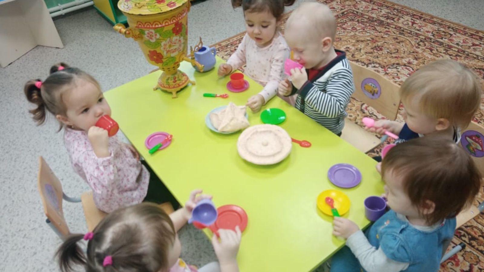 Туган телләр һәм халыклар бердәмлеге елы кысаларында беренче кечкенәләр төркемендә чәй табыны артында татар милли ризыклары белән сыйлану.