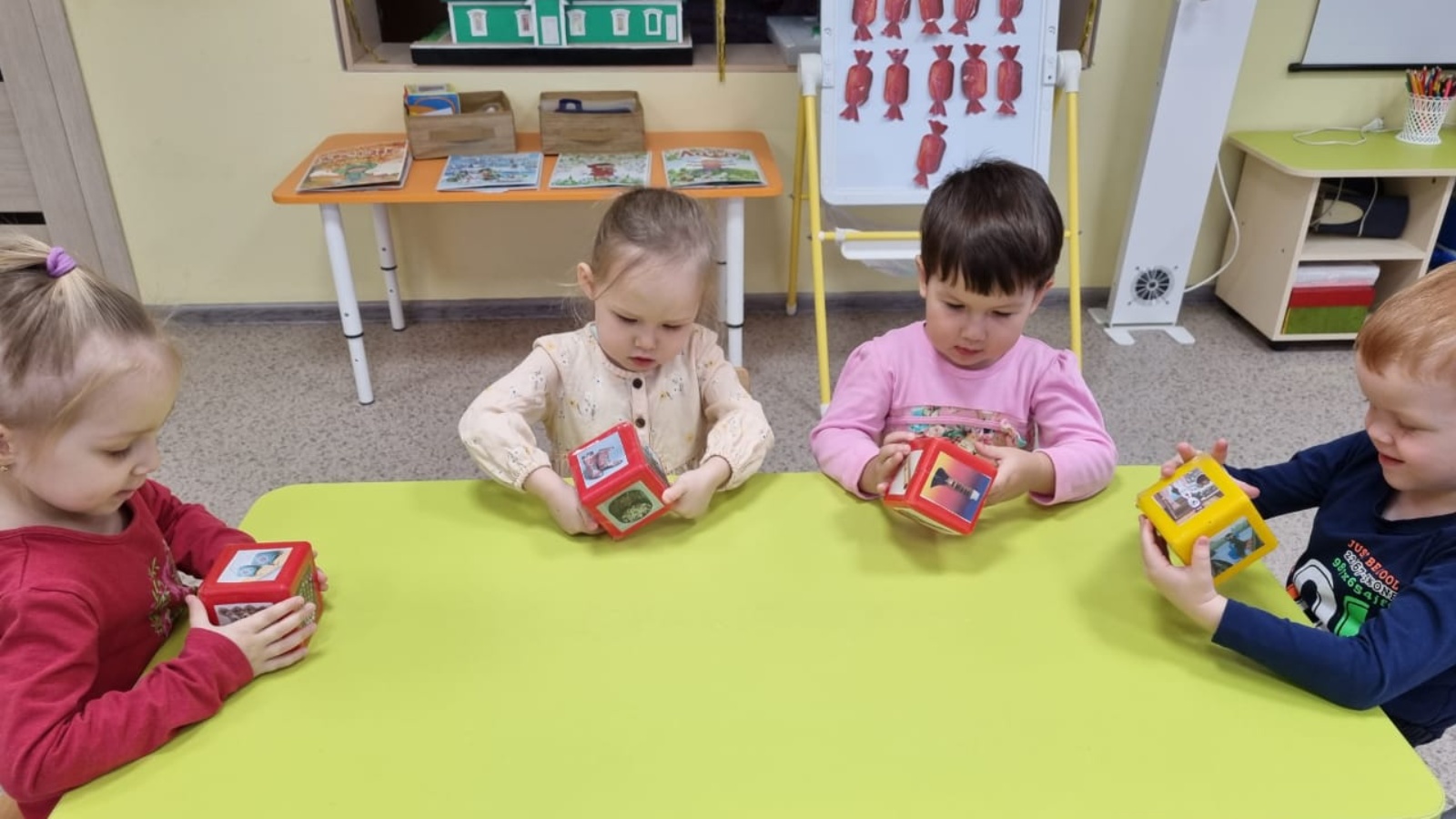 Туган телләр һәм халыклар бердәмлеге елы кысаларында, икенче кечкенәләр төркеме балалары, "Дөрес әйт" дидактик уенын яратып уйный. Кубик чикләрендә татар халкына хас милли кием, бизәк, музыка уен коралы, әкият сүрәтләре урнаштырылган. Әлеге уен татар халкына хас сыйфатларны таный белергә, дөрес әйтергә өйрәтә.