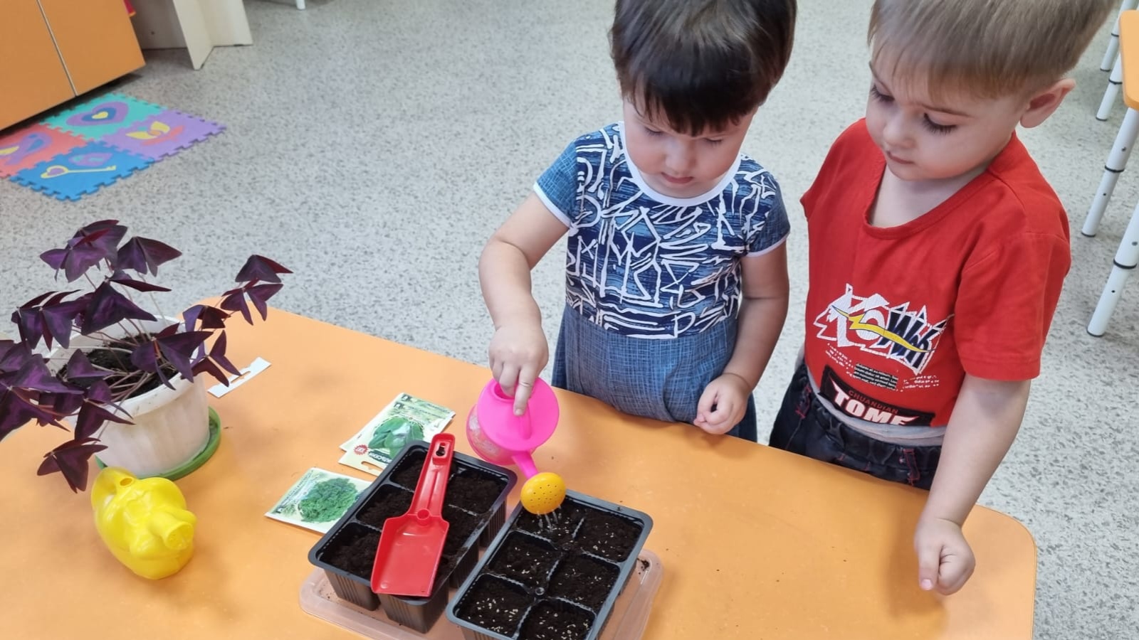 Икенче кечкенәләр төркеме балалары "Су һәм аның үзлекләрен өйрәнү" проекты кысаларында, "Су яшәү чыганагы" темасы астында тәрәз төбендә бакча булдырдылар. Орлык утырту адымнарын күзәтеп, көндәлек су сибү шартын өйрәнделәр. Уңышны көтеп калабыз.
