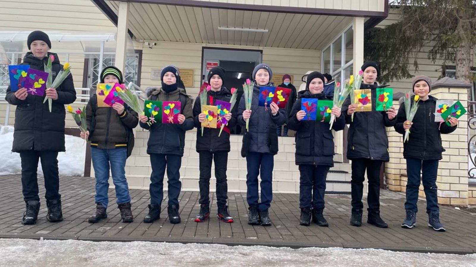Карантин булуга карамастан, Мөслим картлар һәм инвалидлар өчен интернат-йортында яшәүче гүзәл хатын-кызларга чәчәкләр тапшырылды. 4 март көнне «Мизгел» яшьләр үзәге белгечләре Мөслим гимназиясе волонтерлары белән берлектә «Тюльпанное настроение» акциясен үткәрделәр. Интернат – йортта яшәүче әбиләр үз куллары белән ясаган лалә чәчәкләре һәм котлау открыткаларын алды. Акция кысаларында без алар өчен сюрприз ясарга тырыштык. Шулай ук, балалар үтеп киткән Ватанны саклаучылар көне белән бабайларны да котладылар һәм открыткалар тапшырдылар.