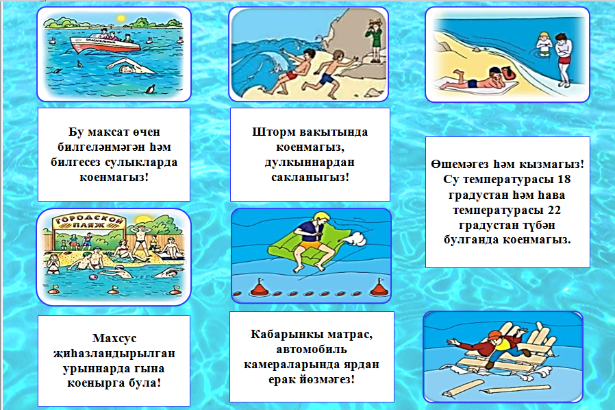 Җәйге каникул чорлары ешрак табигатьтә була, балалар күпчелек очракта үз ирекләре белән ял итә торган вакыт. Аларның яллары имин узсын өчен берничә кагыйдәне белү зарур. Фото белешмәлекләр белән танышырга һәм балаларга кечкенә инструктаж үткәрергә киңәш итә иминлек сакчылары.