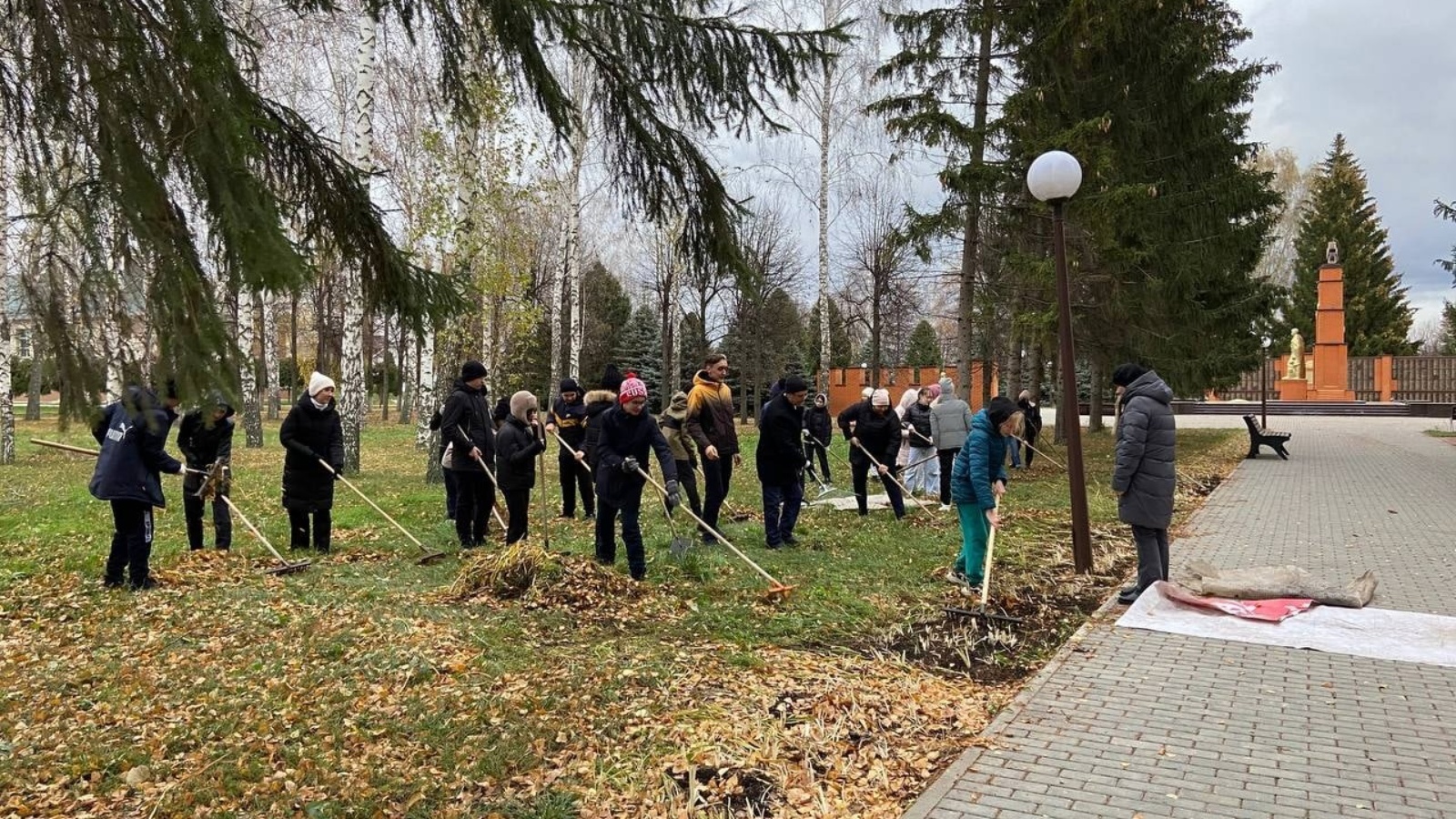 Хәрби һәм хезмәт даны мемориаль комплексында көзге җыештыру эшләре кайный.